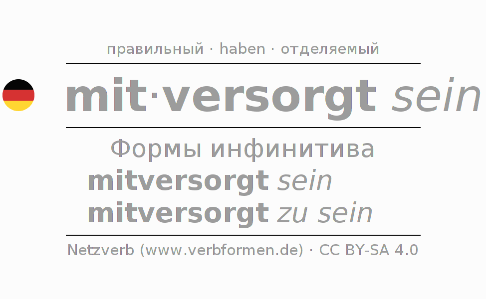 Этот глагол mitversorgen полностью спрягается во всех лицах и числах Инфинитив Презенс Перфект.