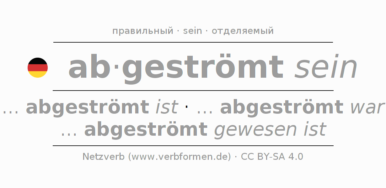 Этот глагол abströmen полностью спрягается во всех лицах и числах Инфинитив Презенс Перфект.