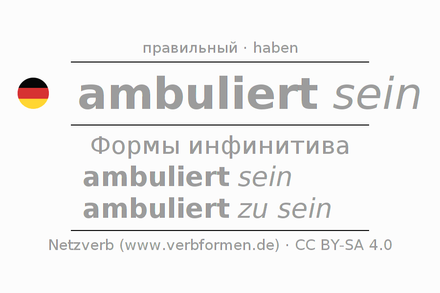 Этот глагол ambulieren (hat) полностью спрягается во всех лицах и числах Инфинитив Презенс Перфект.