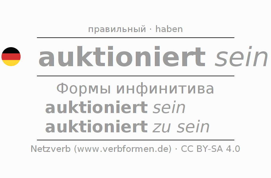 Этот глагол auktionieren полностью спрягается во всех лицах и числах Инфинитив Презенс Перфект.