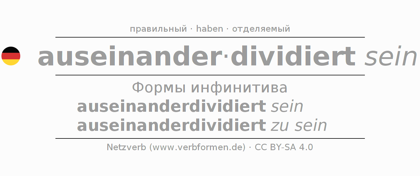 Этот глагол auseinanderdividieren полностью спрягается во всех лицах и числах Инфинитив Презенс Перфект.