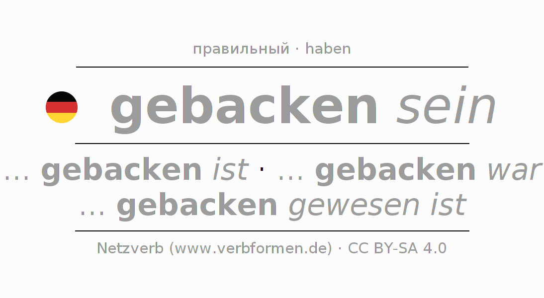 Этот глагол backen (regelm) полностью спрягается во всех лицах и числах Инфинитив Презенс Перфект.