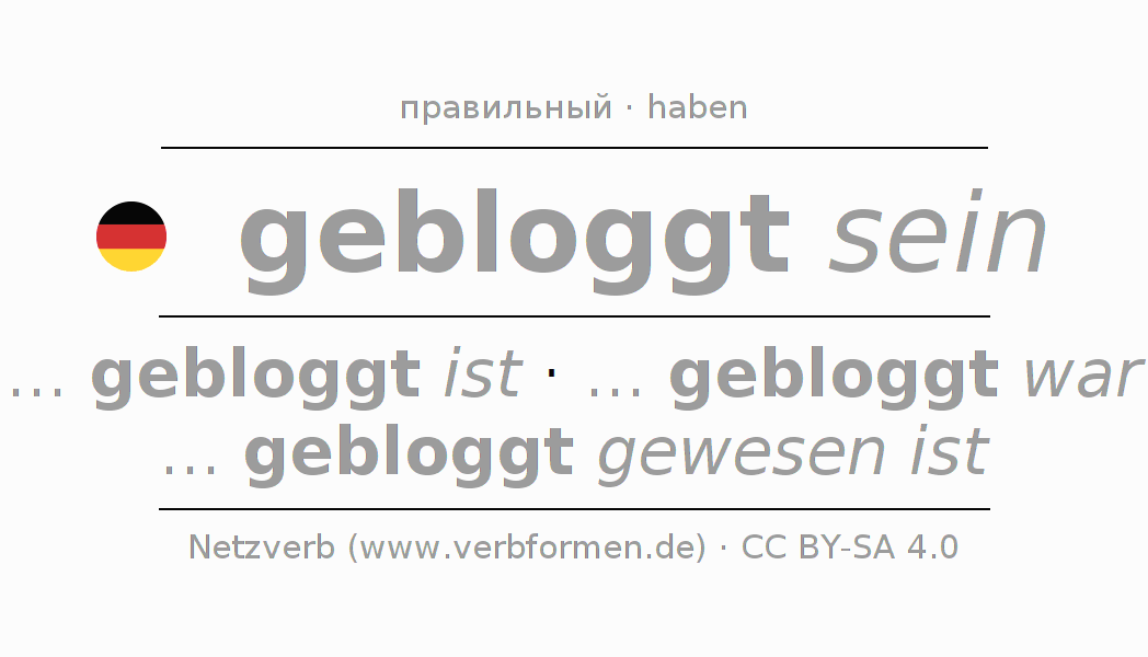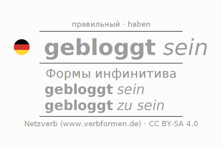 Этот глагол bloggen полностью спрягается во всех лицах и числах Инфинитив Презенс Перфект.