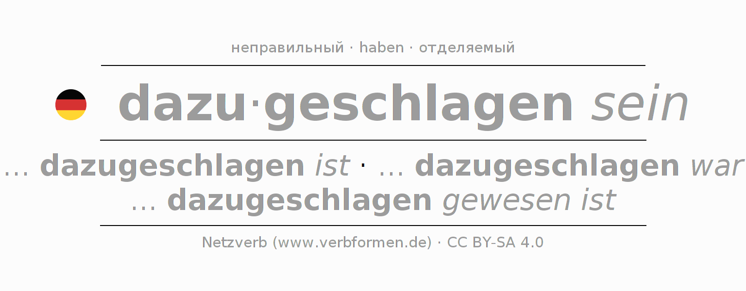 Этот глагол dazuschlagen полностью спрягается во всех лицах и числах Инфинитив Презенс Перфект.