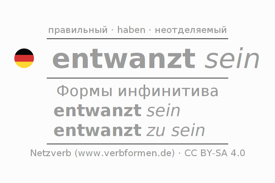 Этот глагол entwanzen полностью спрягается во всех лицах и числах Инфинитив Презенс Перфект.
