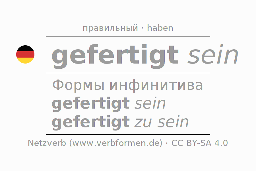 Этот глагол fertigen полностью спрягается во всех лицах и числах Инфинитив Презенс Перфект.