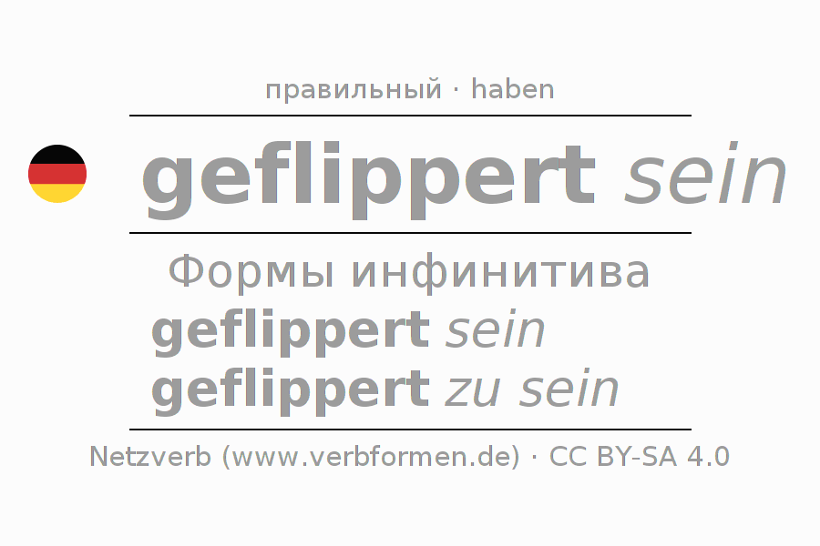 Этот глагол flippern полностью спрягается во всех лицах и числах Инфинитив Презенс Перфект.