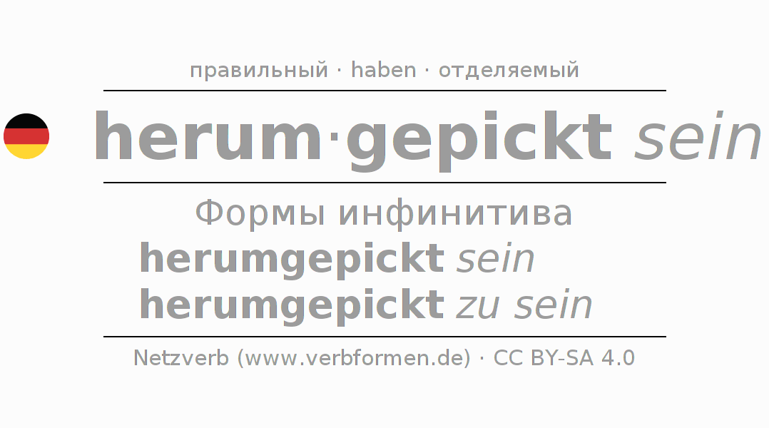 Этот глагол herumpicken полностью спрягается во всех лицах и числах Инфинитив Презенс Перфект.