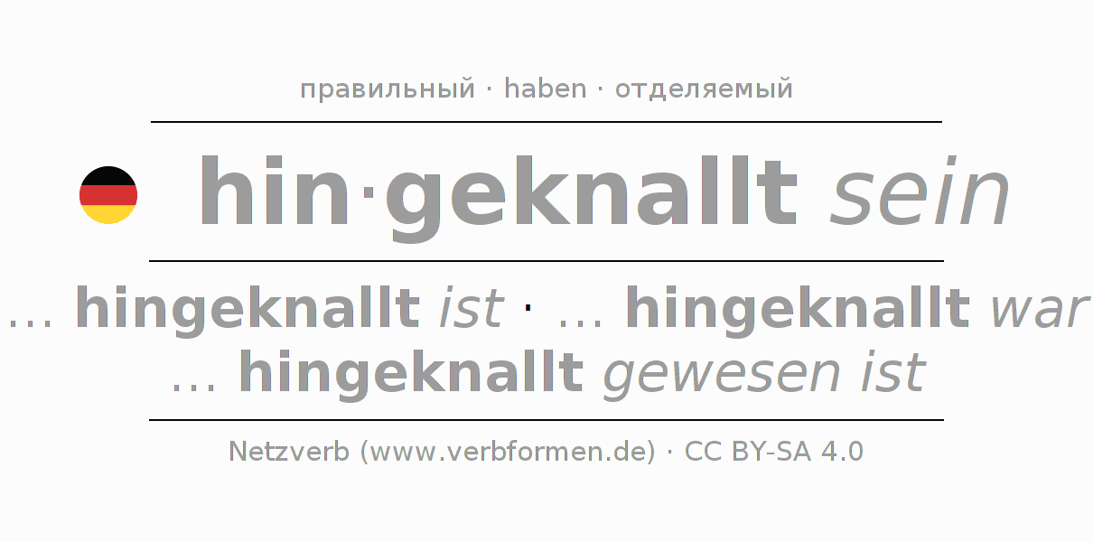 Этот глагол hinknallen (hat) полностью спрягается во всех лицах и числах Инфинитив Презенс Перфект.