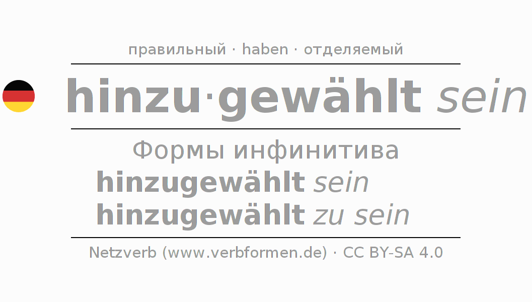 Этот глагол hinzuwählen полностью спрягается во всех лицах и числах Инфинитив Презенс Перфект.