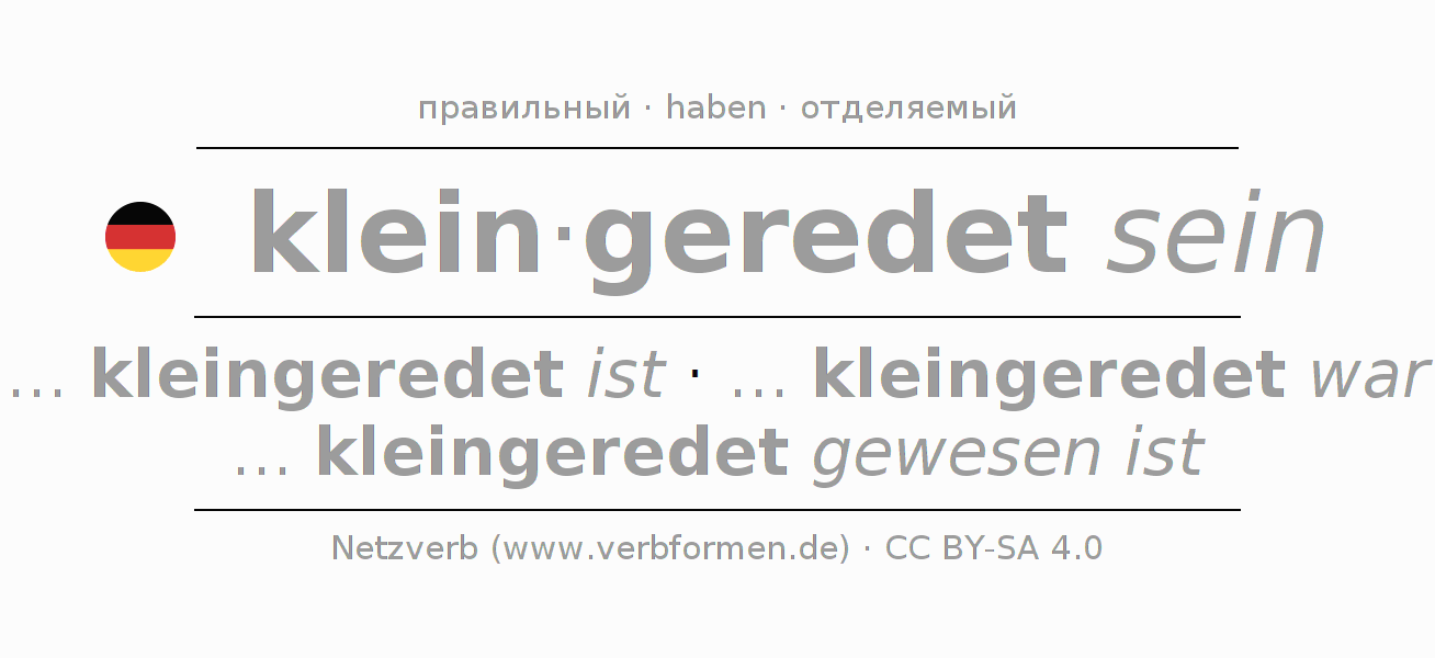 Этот глагол kleinreden полностью спрягается во всех лицах и числах Инфинитив Презенс Перфект.
