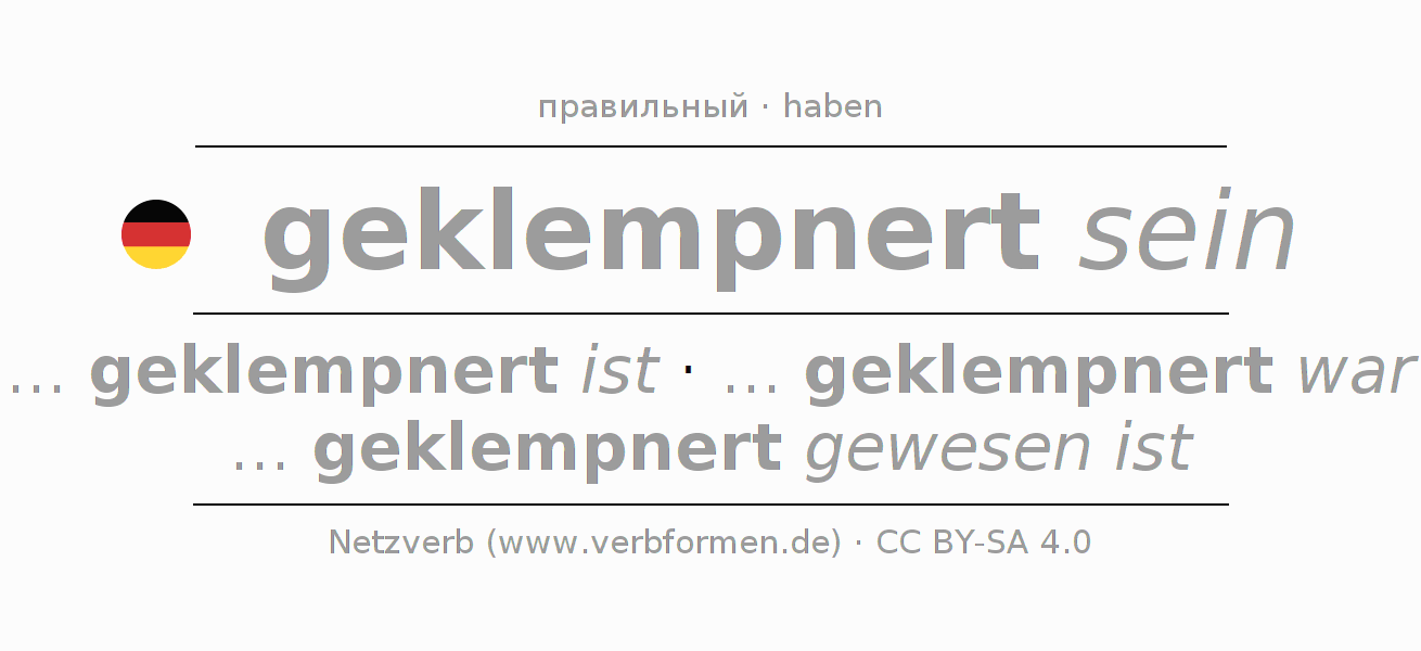 Этот глагол klempnern полностью спрягается во всех лицах и числах Инфинитив Презенс Перфект.