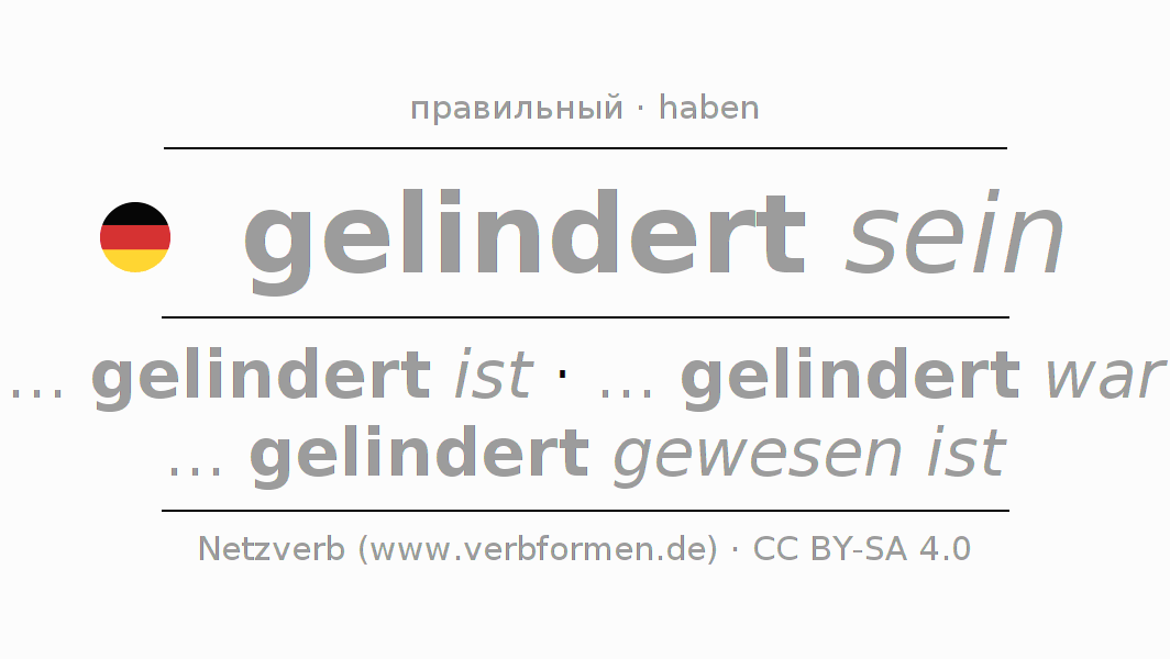 Этот глагол lindern полностью спрягается во всех лицах и числах Инфинитив Презенс Перфект.