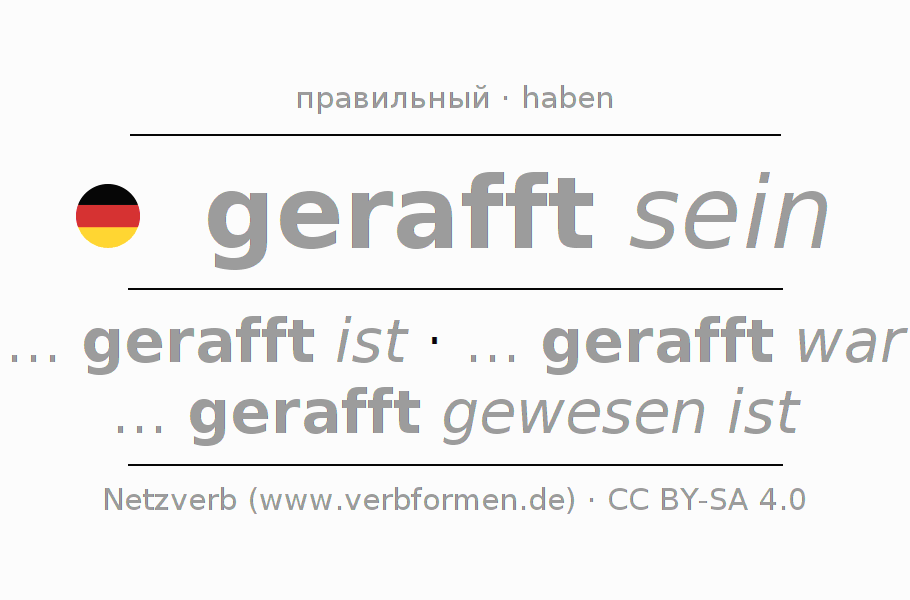 Этот глагол raffen полностью спрягается во всех лицах и числах Инфинитив Презенс Перфект.