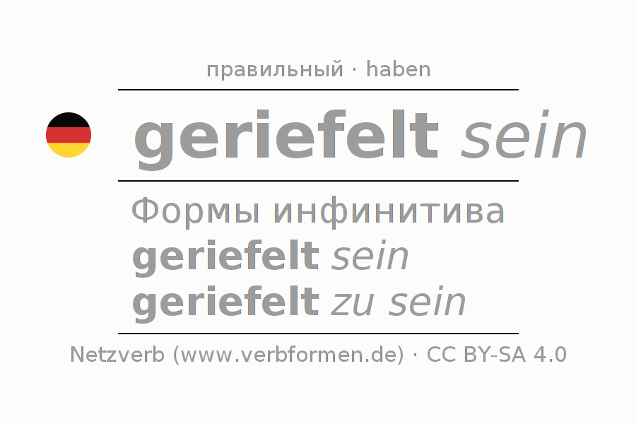 Этот глагол riefeln полностью спрягается во всех лицах и числах Инфинитив Презенс Перфект.