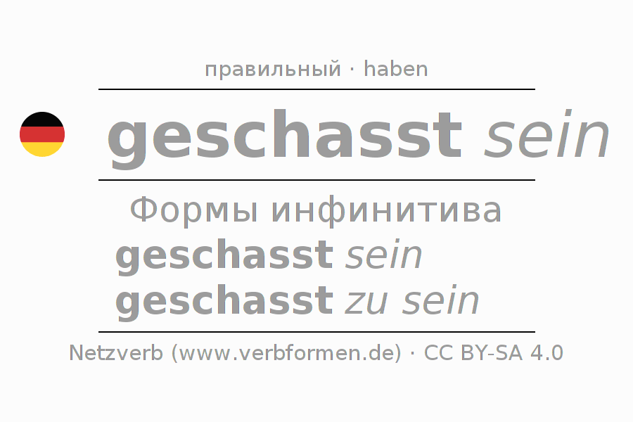 Этот глагол schassen полностью спрягается во всех лицах и числах Инфинитив Презенс Перфект.