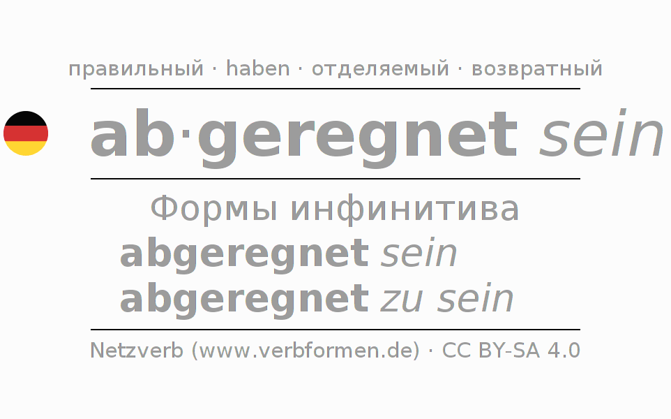Этот глагол sich abregnen полностью спрягается во всех лицах и числах Инфинитив Презенс Перфект.