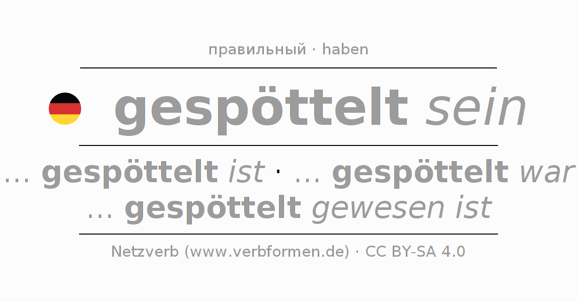 Этот глагол spötteln полностью спрягается во всех лицах и числах Инфинитив Презенс Перфект.