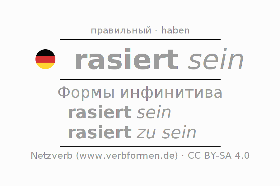 Этот глагол rasieren полностью спрягается во всех лицах и числах Инфинитив Презенс Перфект.