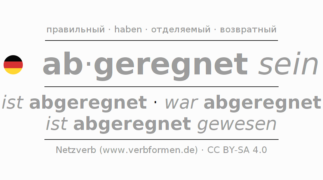 Этот глагол sich abregnen полностью спрягается во всех лицах и числах Инфинитив Презенс Перфект.