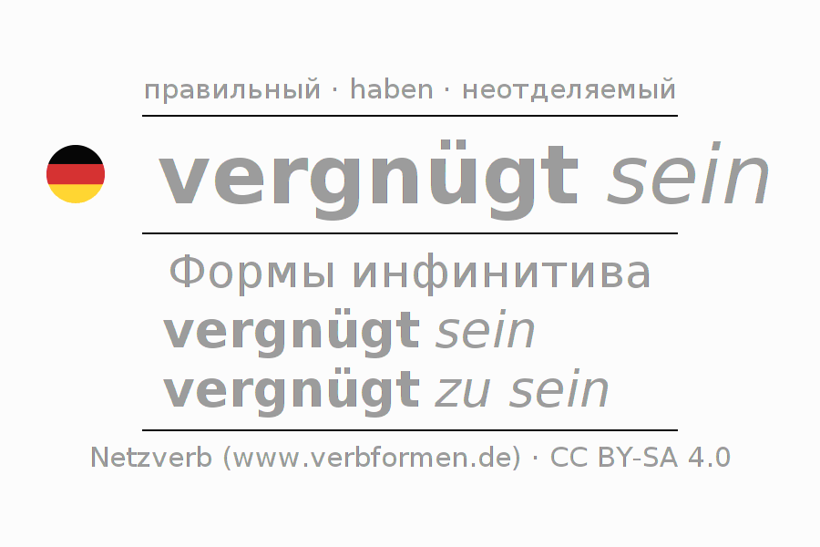Этот глагол vergnügen полностью спрягается во всех лицах и числах Инфинитив Презенс Перфект.