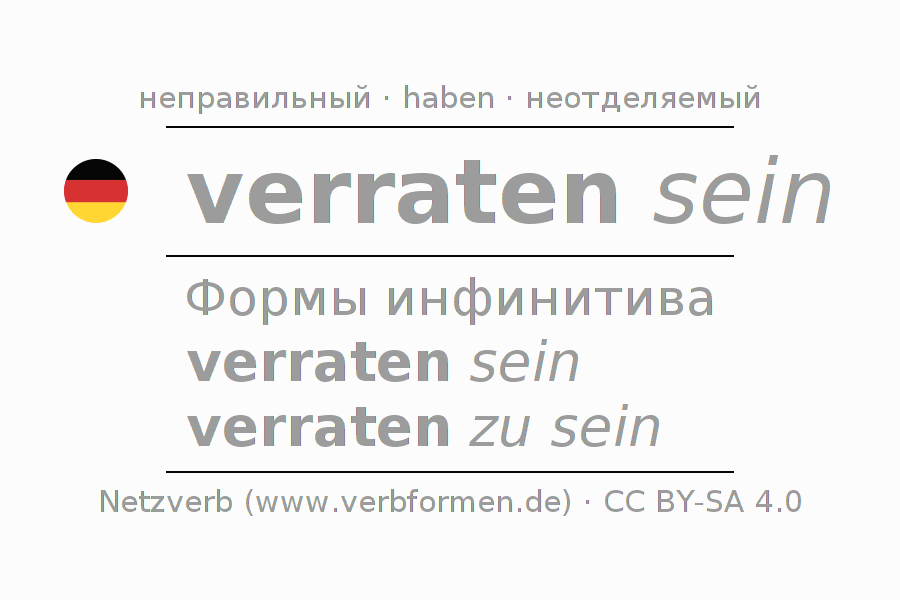 Этот глагол verraten полностью спрягается во всех лицах и числах Инфинитив Презенс Перфект.
