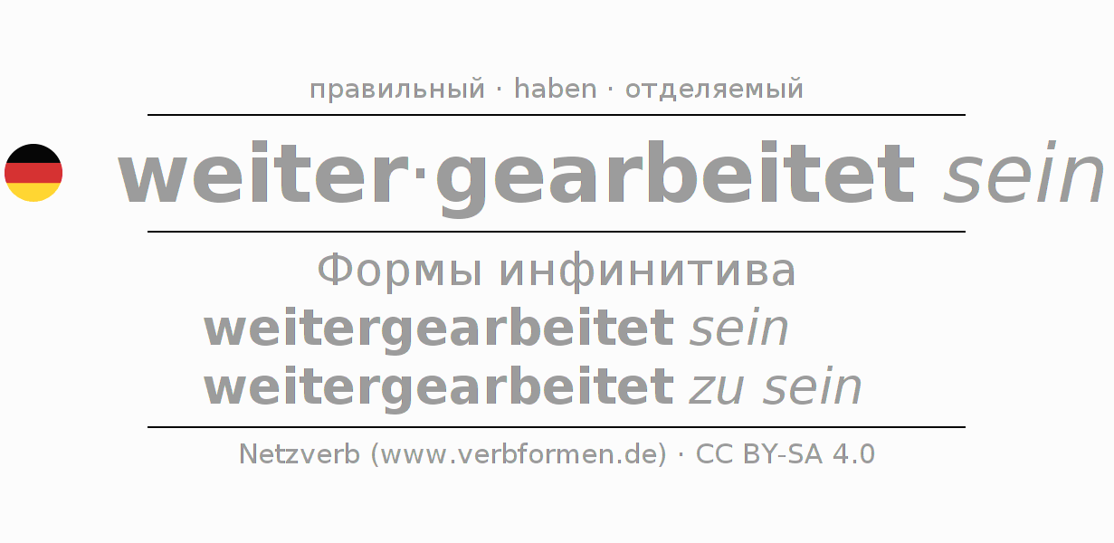 Этот глагол weiterarbeiten полностью спрягается во всех лицах и числах Инфинитив Презенс Перфект.