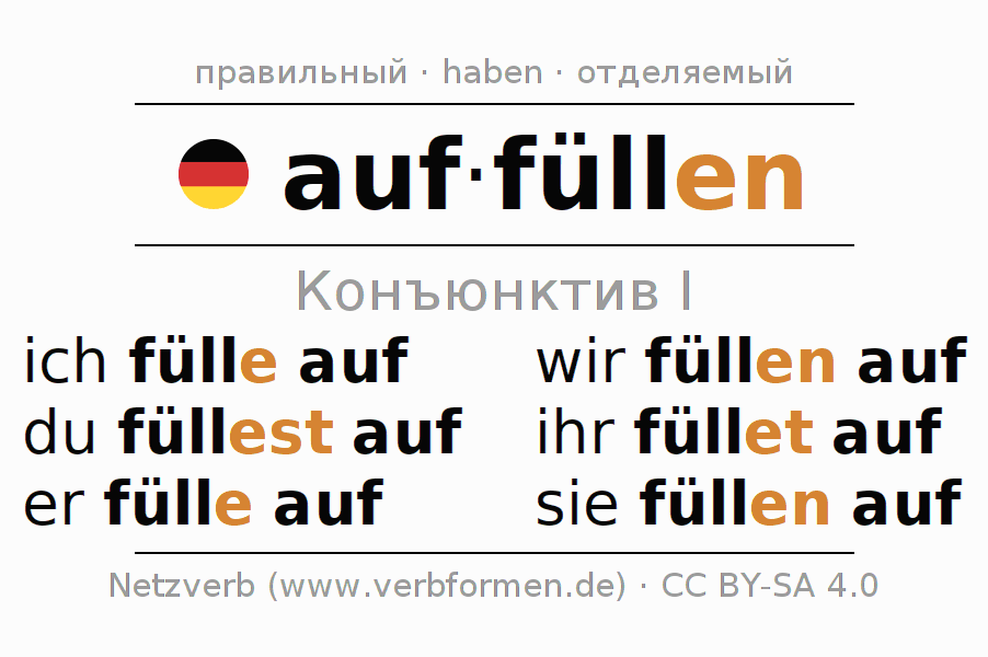 Этот глагол auffüllen полностью спрягается во всех лицах и числах Koнъюнктив Презенс.