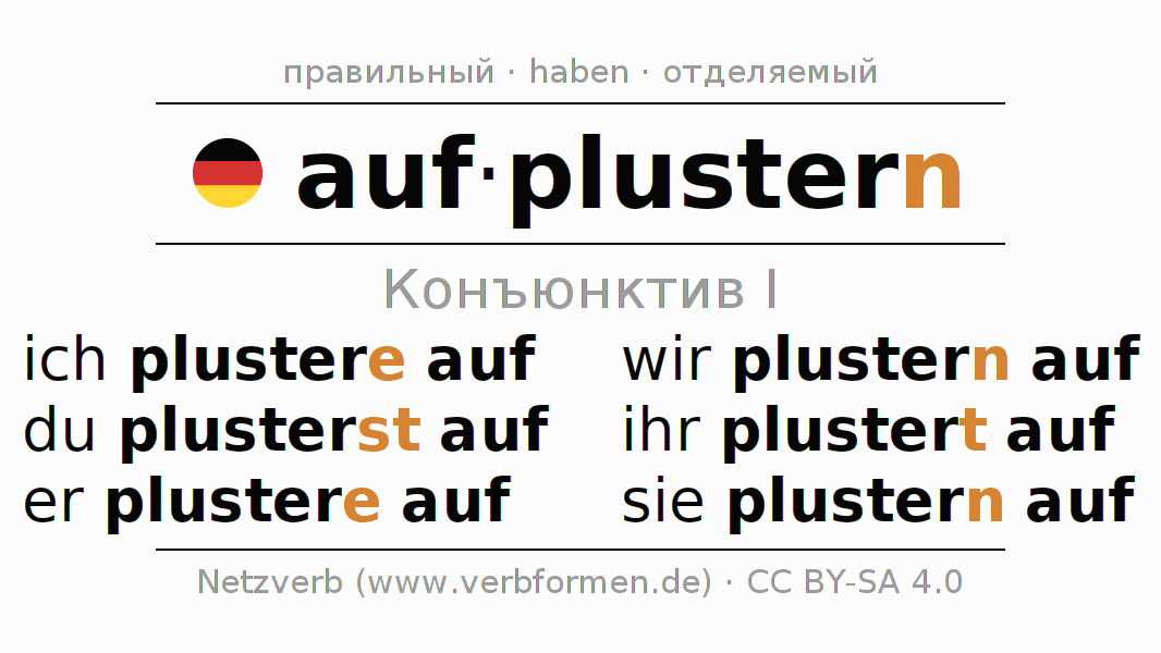 Этот глагол aufplustern полностью спрягается во всех лицах и числах Koнъюнктив Презенс.