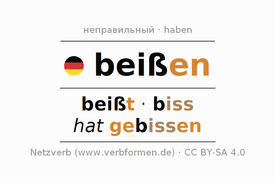 Спряжение beißen (кусать, укусить) в сослагательном наклонении I: ich beiße, du beißest, er beiße, wir beißen, ihr beißet, sie beißen.