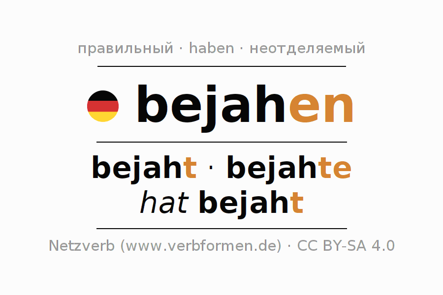 Спряжение bejahen (одобрять, подтверждать) в сослагательном наклонении I: ich bejahe, du bejahest, er bejahe, wir bejahen, ihr bejahet, sie bejahen.