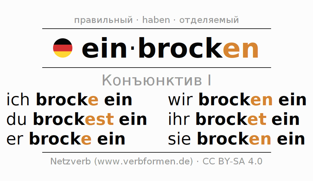 Этот глагол einbrocken полностью спрягается во всех лицах и числах Koнъюнктив Презенс.
