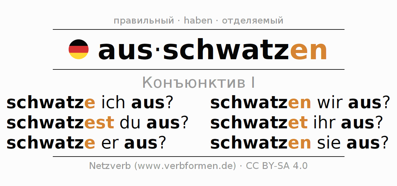 - Как спрягается ausschwatzen в Конъюнктив I?