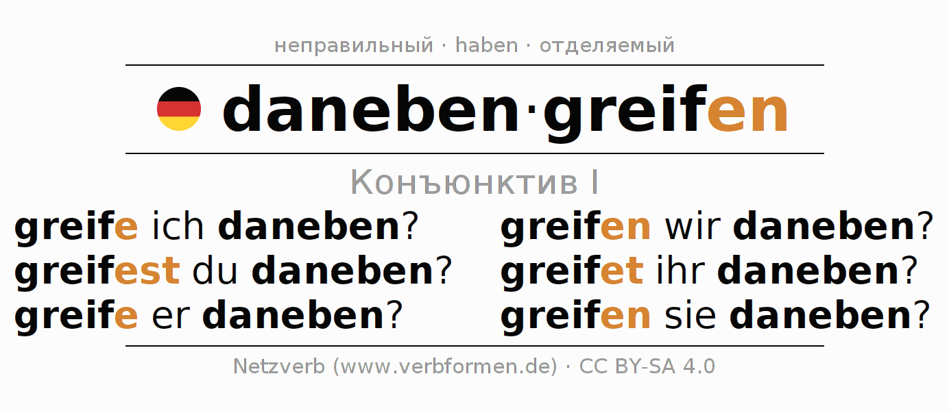 Этот глагол danebengreifen полностью спрягается во всех лицах и числах Koнъюнктив Презенс.