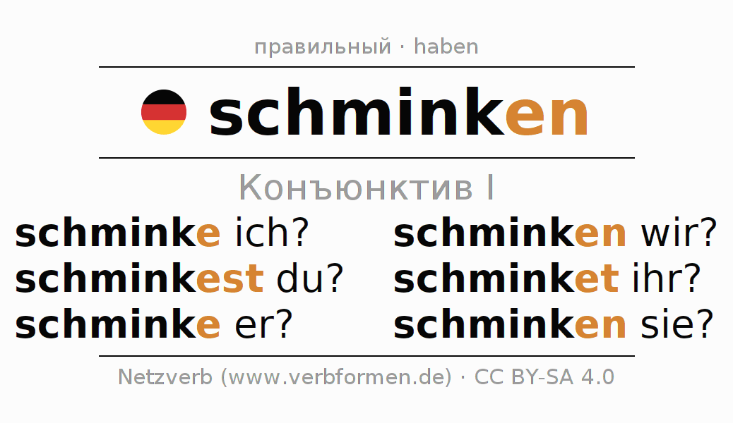 Этот глагол schminken полностью спрягается во всех лицах и числах Koнъюнктив Презенс.