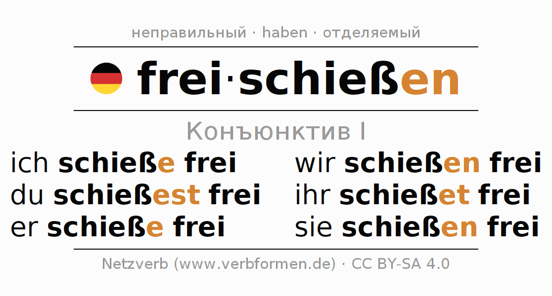 Этот глагол freischießen полностью спрягается во всех лицах и числах Koнъюнктив Презенс.