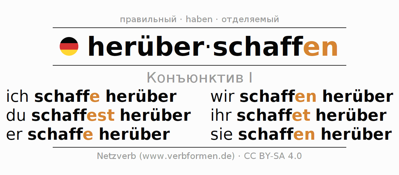 Этот глагол herüberschaffen полностью спрягается во всех лицах и числах Koнъюнктив Презенс.