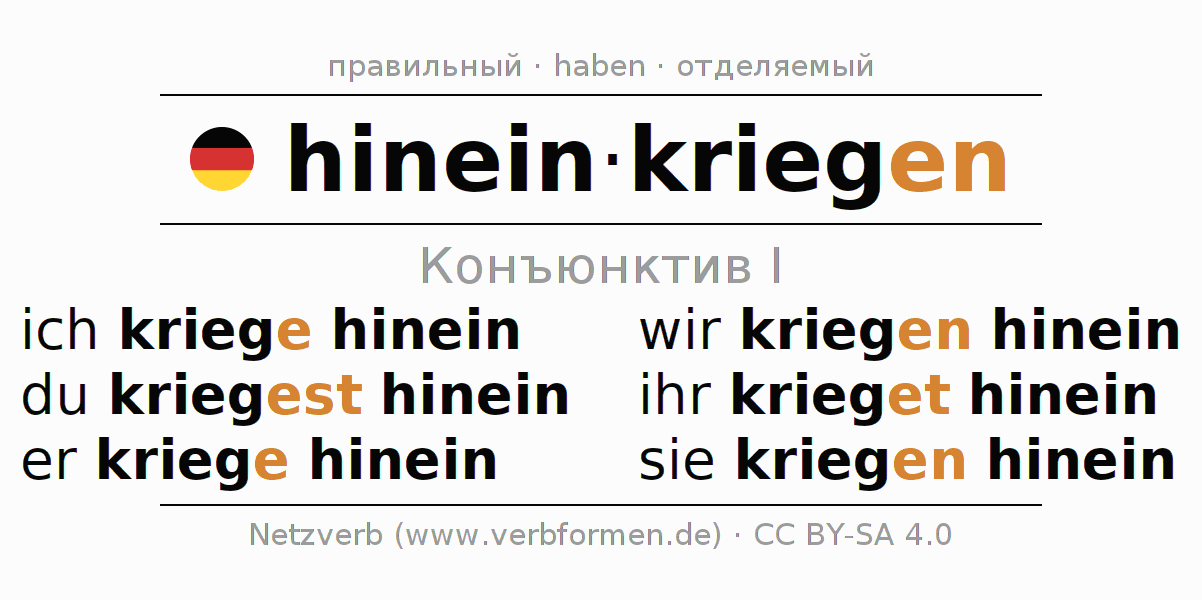 - Как спрягается hineinkriegen в Конъюнктив I?