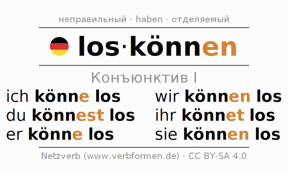 Этот глагол loskönnen полностью спрягается во всех лицах и числах Koнъюнктив Презенс.