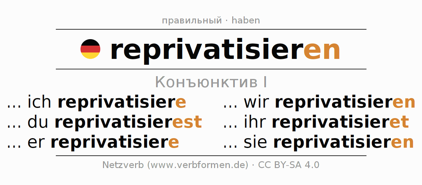 Этот глагол reprivatisieren полностью спрягается во всех лицах и числах Koнъюнктив Презенс.