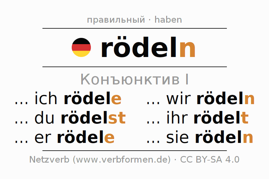 Этот глагол rödeln полностью спрягается во всех лицах и числах Koнъюнктив Презенс.