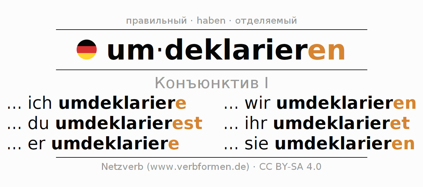 Этот глагол umdeklarieren полностью спрягается во всех лицах и числах Koнъюнктив Презенс.