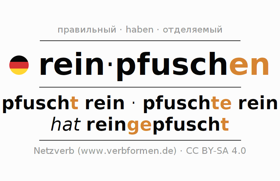 - Как спрягается reinpfuschen в Презенс?