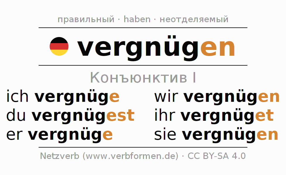 Этот глагол vergnügen полностью спрягается во всех лицах и числах Koнъюнктив Презенс.