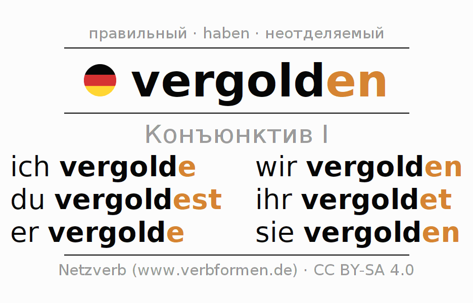 Этот глагол vergolden полностью спрягается во всех лицах и числах Koнъюнктив Презенс.