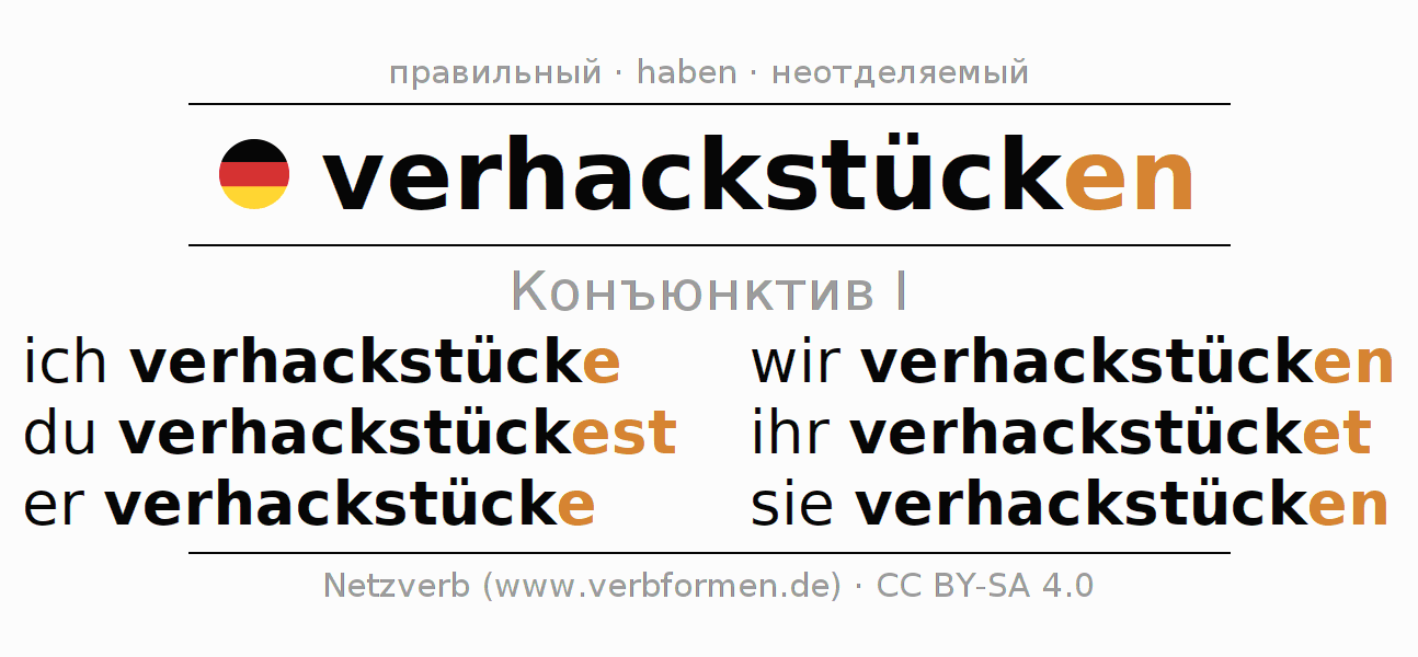 Этот глагол verhackstücken полностью спрягается во всех лицах и числах Koнъюнктив Презенс.