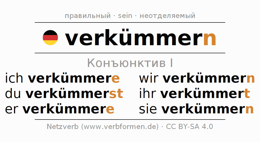 Этот глагол verkümmern полностью спрягается во всех лицах и числах Koнъюнктив Презенс.