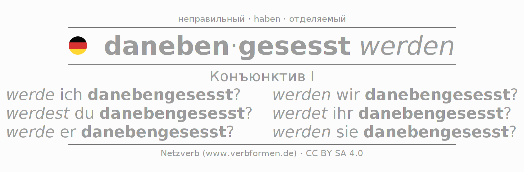 - Как спрягается danebensitzen в Конъюнктив I?
