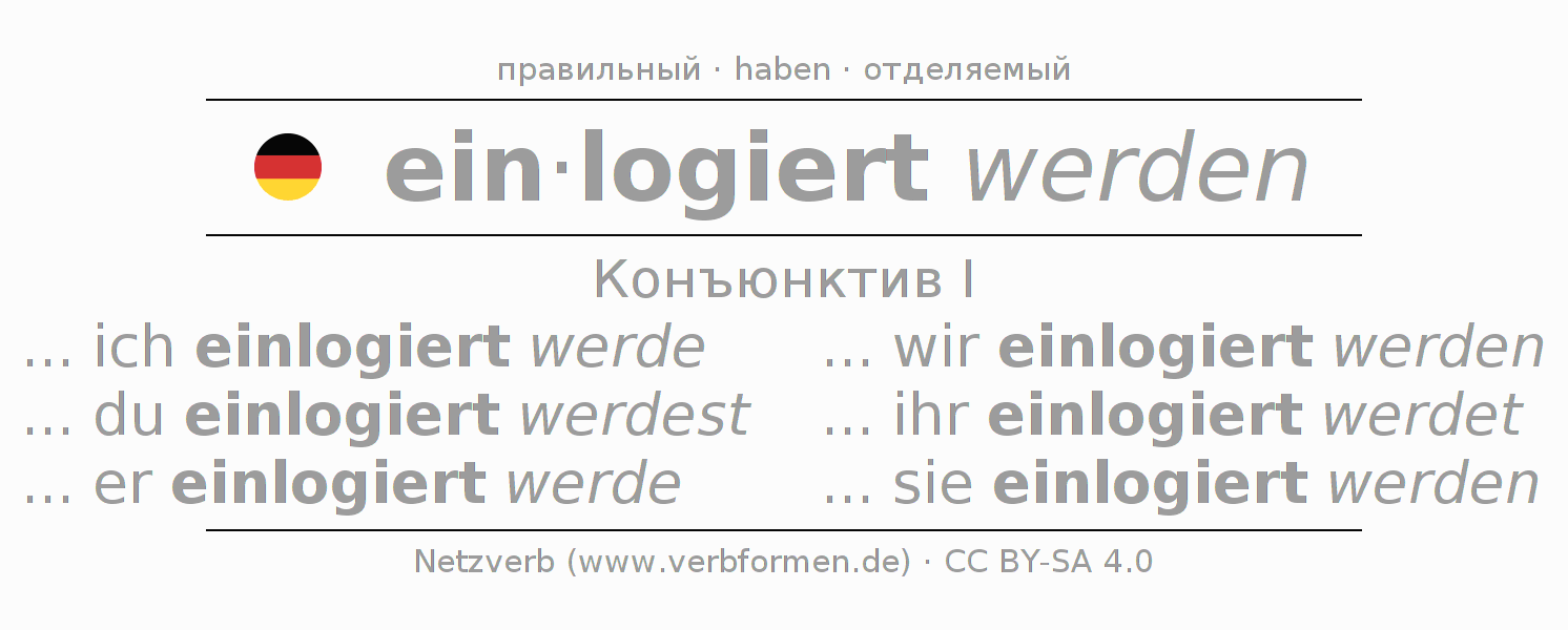 Этот глагол einlogieren полностью спрягается во всех лицах и числах Koнъюнктив Презенс.