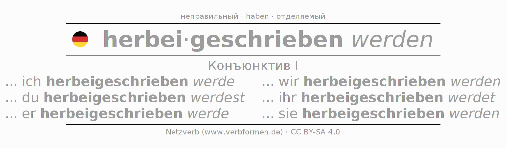 - Как спрягается herbeischreiben в Конъюнктив I?